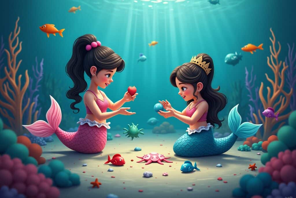 - Meerjungfrauen-Landschaften: Gestaltet eine kleine Unterwasserwelt aus Knete, mit Korallen, Fischen und natürlich euren selbstgemachten Meerjungfrauen.
