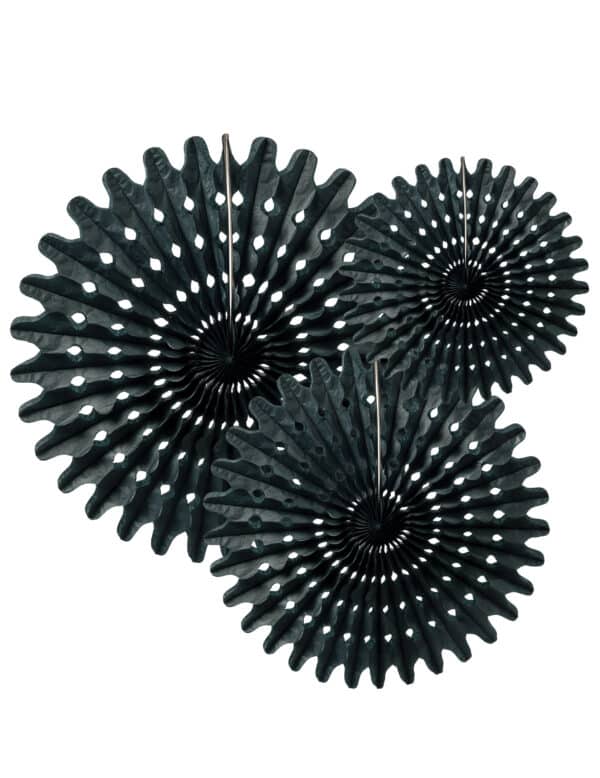 Verleihe deiner Party Eleganz: Papierfächer-Set 3-teilig in Schwarz